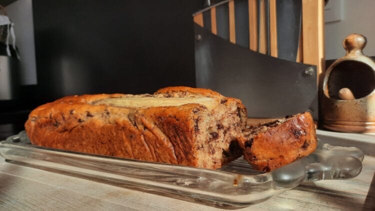 Ce qui rend cette recette particulièrement spéciale, ce sont les pépites de chocolat. Elles parsèment généreusement chaque bouchée, ajoutant une touche gourmande et irrésistible à chaque tranche. Le contraste entre la douceur sucrée des bananes et le chocolat crée une harmonie parfaite de saveurs.