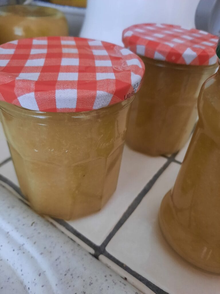 - Verser ensuite dans les pots sortis de la casseroles, remettre le couvercle puis retourner les bocaux pour mieux les fermer (surtout si la consommation n’est pas immédiate).