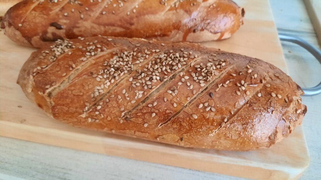 - Entailler les pains en diagonale à l’aide d’un couteau.