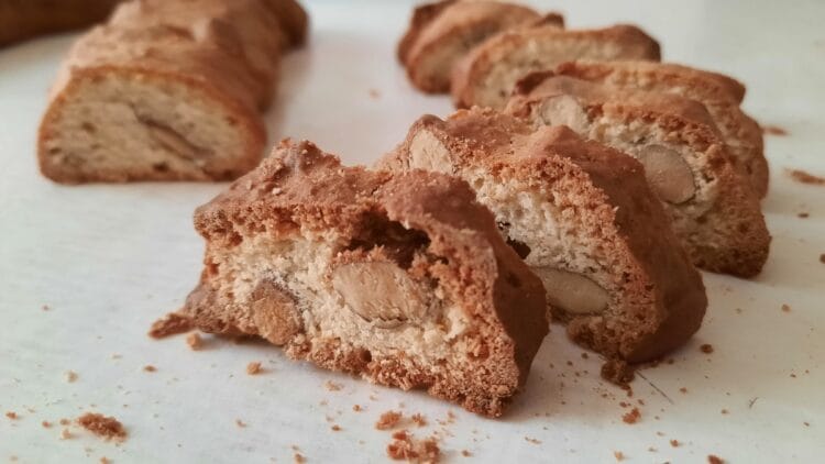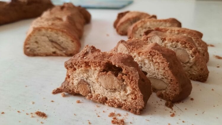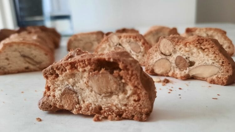 Les Cantuccini alle Mandorle sont également connus sous le nom de biscotti. Ce sont des petits biscuits traditionnels italiens originaires de la région de la Toscane. Leur nom vient du mot « cantuccio », qui signifie coin en italien. En effet, ces biscuits sont souvent servis avec une boisson chaude pour être trempés dedans. De plus, leur forme allongée est parfaite pour s’insérer dans une tasse ou un verre. C’est pourquoi cette Recette Cantuccini est parfaite !
