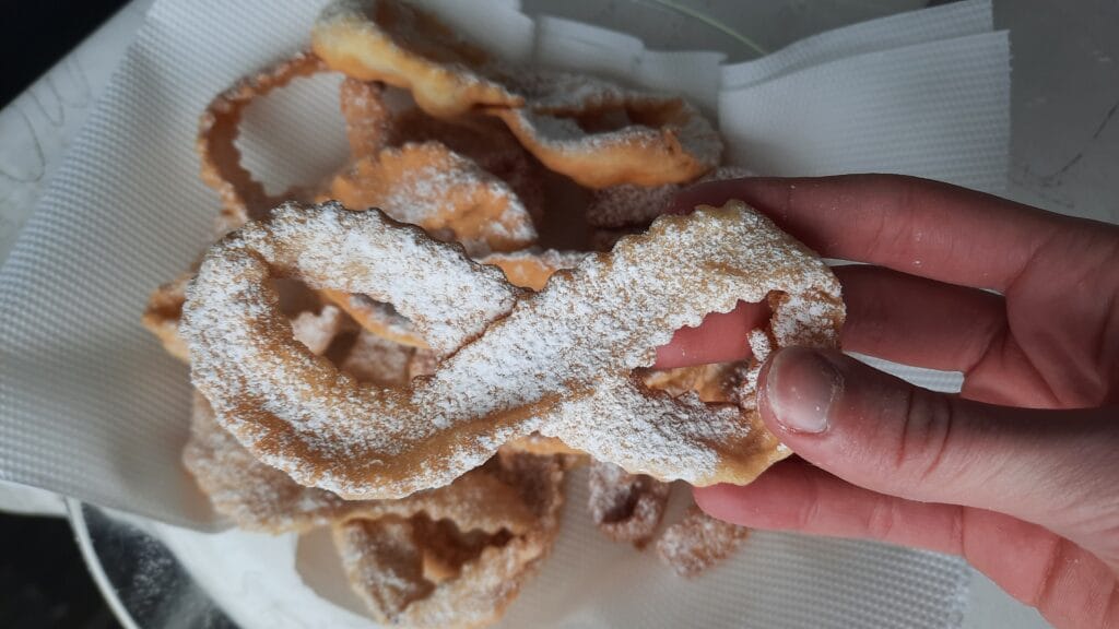 Je vous présente mes gâteaux italiens préférés : les schoffs ! Ils oscillent entre le biscuit et le beignet mais le goût est juste tellement bon ! Un véritable délice (c’est pas pour rien que j’en raffole) ! Le terme « schoff » provient du patois italien mais on pourrait donc en réalité les appeler « Biscuits nœuds » puisque c’est la forme qu’ils ont. Je vous avoue que pour la forme, j’ai eu quelques difficultés (ce pourquoi mon papy m’a gentiment envoyé un plan pour décrire comme les former. Vous devez réaliser une forme de 8 qui, dans l’absolu, doit se croiser à l’aide de trous. J’ai donc fait la même chose mais sans trouer ma pâte pour que ce soit plus simple… je les referai sûrement avec mon papy pour un résultat plus authentique et je vous repartagerai la recette à ce moment là, accompagné de son glaçage typique… miam ! Mais, ne nous égarons pas : ces gâteaux sont parfaits pour tout type d’occasions ou de moments (du petit-déjeuner jusqu’au souper, ils vous donneront envie). La recette est très simple, il faut simplement faire attention pour la cuisson qui se fait à l’huile !
